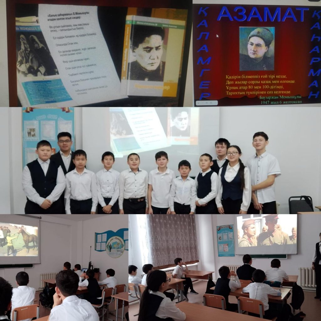 Бүгін 6 А 10 А 11 А сыныптар арасында "Халық қаһарманы,жазушы Бауыржан Момышұлының туғанына 115 жыл" атты сынып сағаты өткізілді.Сынып сағатында Бауыржан Момышұлының өмір баяны туралы видио ролик көрсетілді және халқына қалдырған көптеген кітаптары мен керемет...