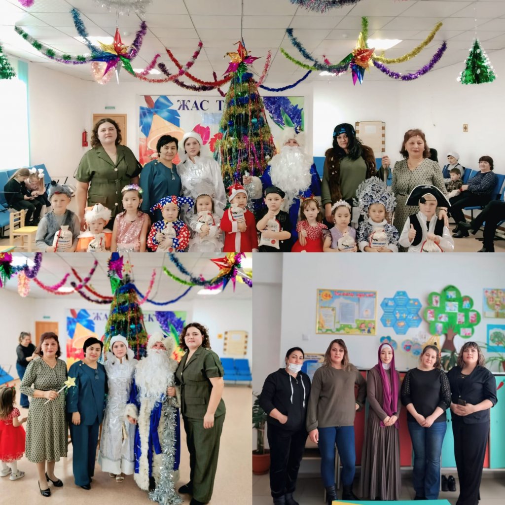 Жаңа жылдық шырша мерекесінде Аяз ата, Ақша қар, Жалмауыз кемпір рөлдерін сомдап, балаларға қуаныш сыйлағандарыңыз үшін шын жүректен алғыс айтамыз. Сіздердің қолдауларыңыз мерекемізді жарқын әрі есте қаларлық етті!