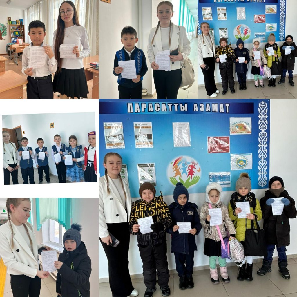 Біздің мектеп парламентінің белсенділері бастауыш сынып оқушыларын аралады! 👋🎒 Олар серуендеуді қуанышқа айналдыру үшін көктемде өзін қалай ұстау керектігі туралы пайдалы ақпарат парақтарын дайындап, таратты. 🌸